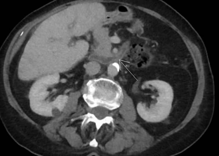 Video 1: reconstrucție CT în plan axial din achiziție postcontrast în timp venos abdomen și pelvis