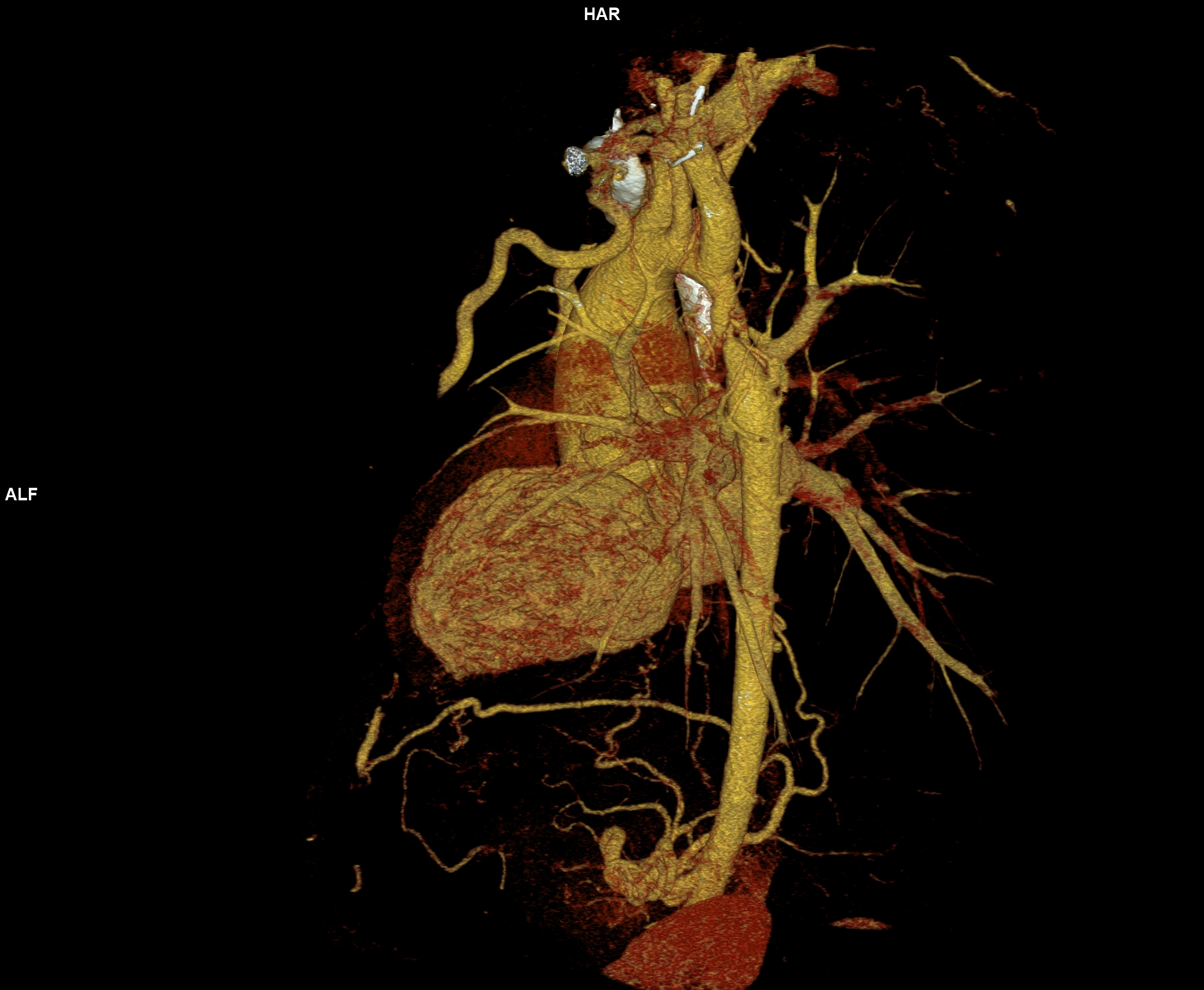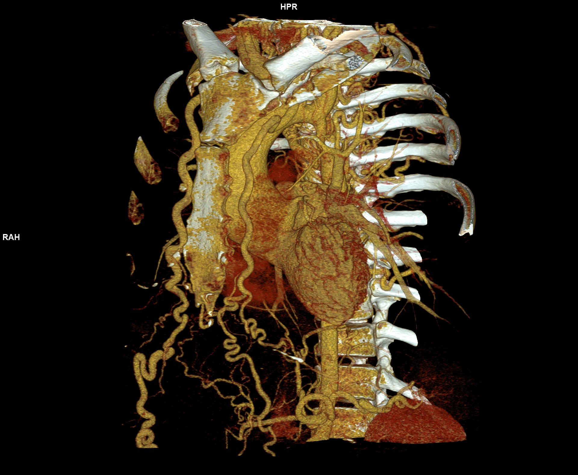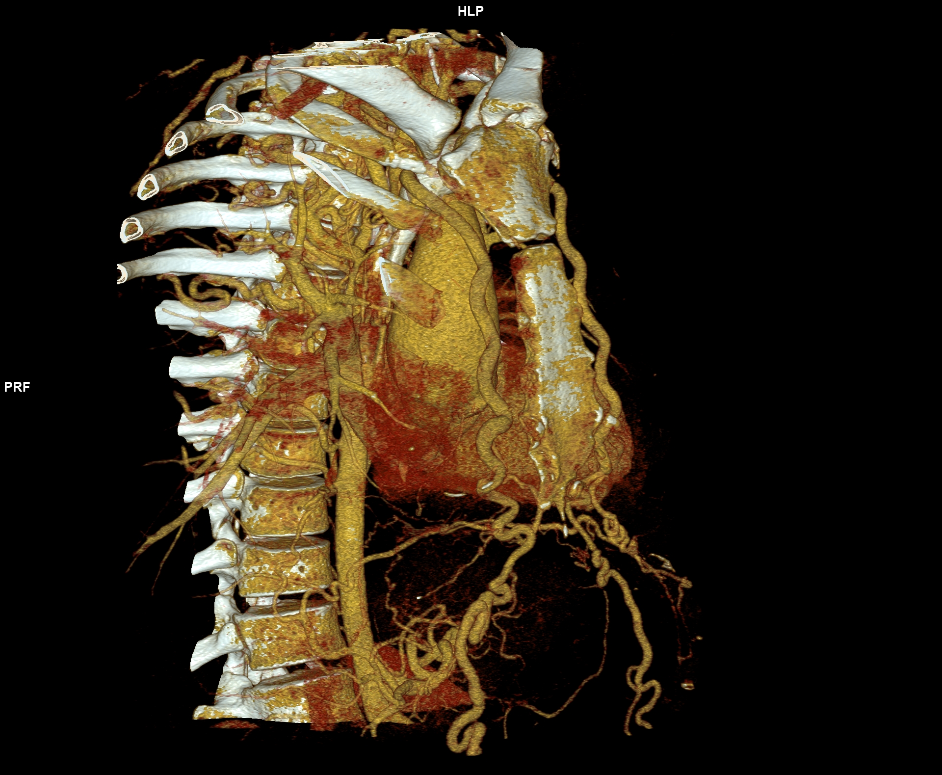 Video 3: reconstrucție volumică (VRT) din achiziție cardioCT cu sincronizare ECG cu eliminarea structurilor osoase