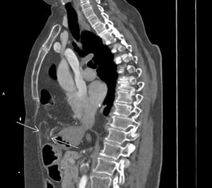 Figurile 1 şi 2: sagital CT în timp venos torace şi abdomen superior