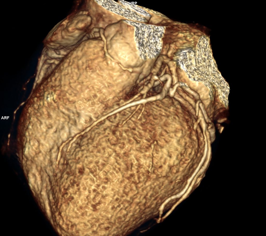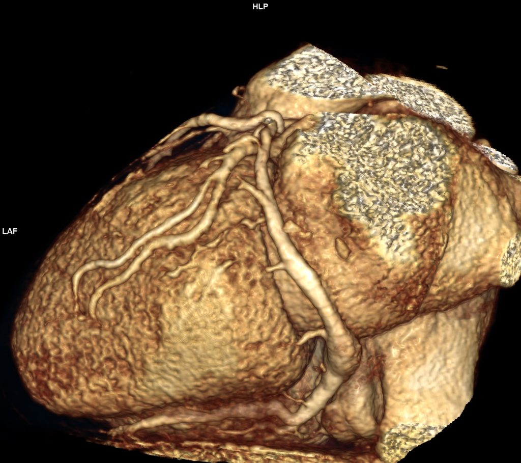 DE LUAT ACASĂ!!! Achiziția optimă în funcție de aparatul CT folosit (număr de detectori) și caracteristicile pacientului (ritm cardiac, habitus, mișcări respiratorii) împreună cu reconstrucția efectuată după achiziție angioCT cu sincronizare cardiacă  permite evaluarea convenabilă a structurilor arteriale și venoase cardiace.