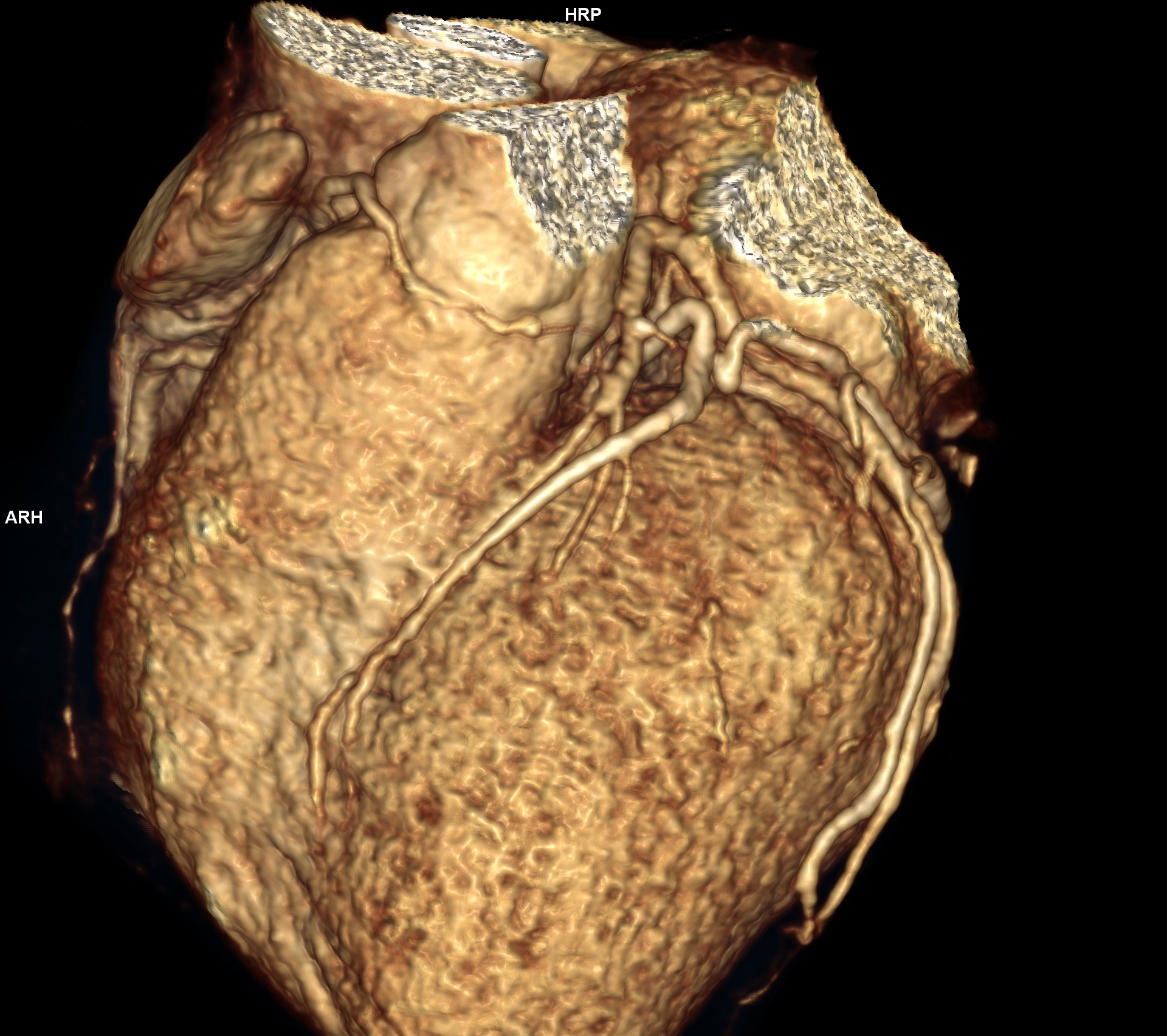 Figura 1, 2, 3, 4: reconstrucție volumică din achiziție cardioCT cu sincronizare ECG