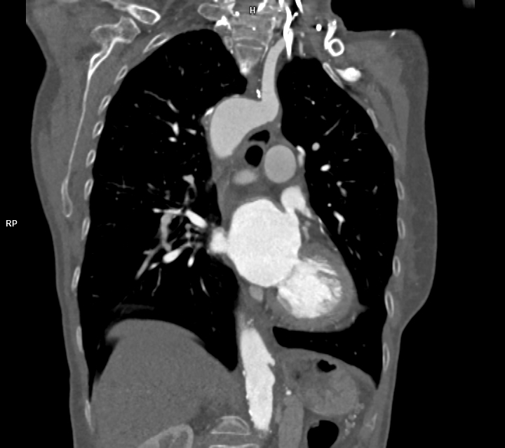 Figura 2: reconstrucție oblic coronală din achiziție angioCT toracică