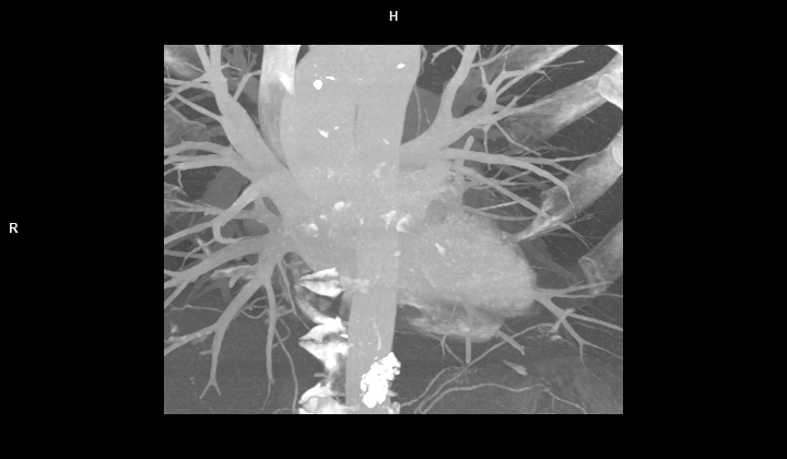 Figura 2: imagine MIP (maximum intensity projection) în plan coronal din achizitie CT fără contrast