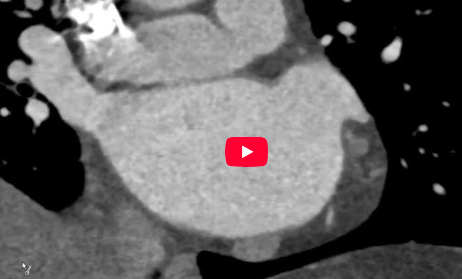 Video 1: axial postcontrast angioCT coronarian cu sincronizare cardiacă