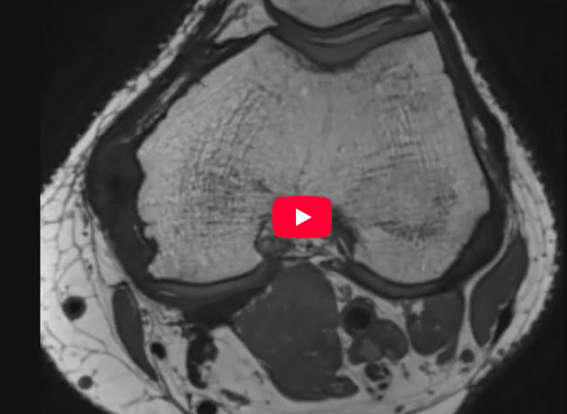 Video 9: reconstrucție axială din achiziție 3D genunchi în ponderație PD la 1 an de la traumatism