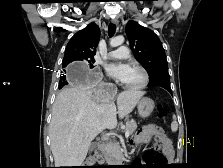 Figura 3: coronal CT în timp venos torace și abdomen